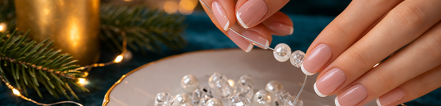 V kompozicích pracujeme se skleněnými i lehkými akrylovými korálky. Díky tomu mohou být ozdoby bohaté, a přesto vzdušné – krásné na pohled i příjemné na zavěšení.